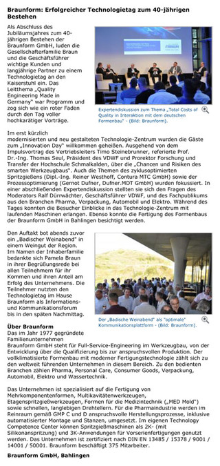 Braunform: Erfolgreicher Technologietag zum 40-jährigen Bestehen